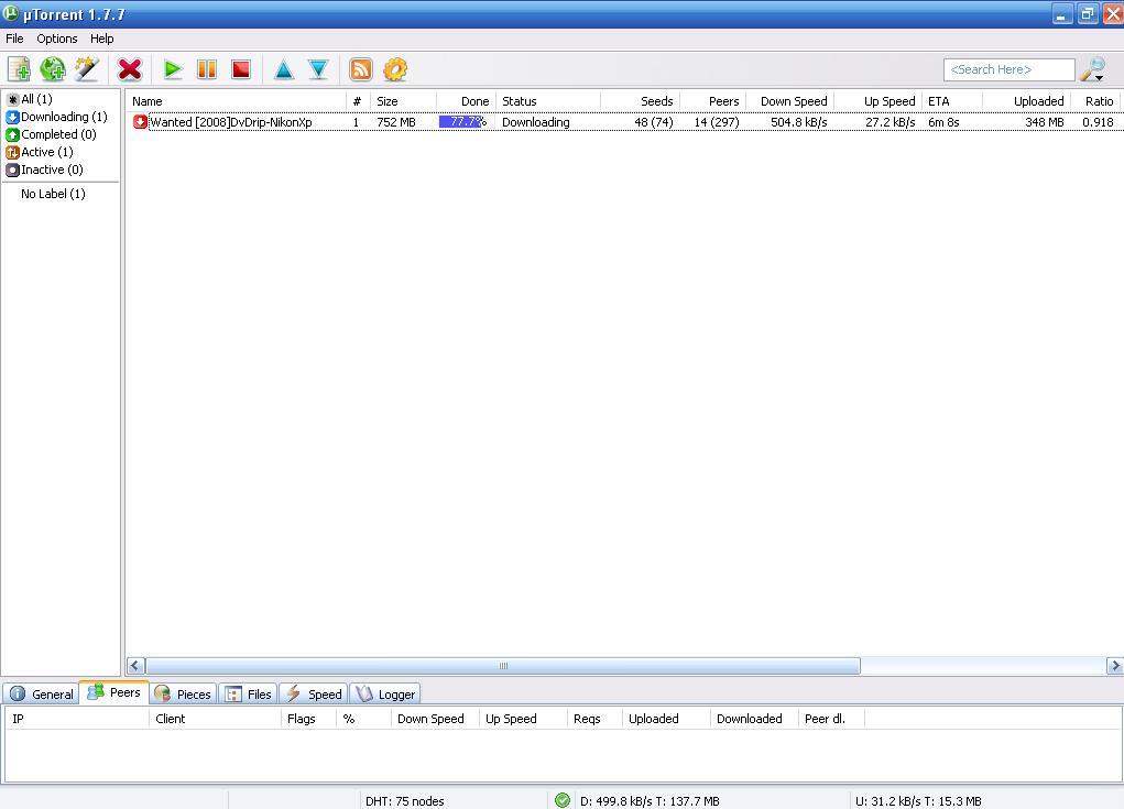 Thử nghiệm với chương trình Utorrent sau khi được mở port, tốc độ download đã tăng từ 185 Kb/s lên 500 Kb/s.