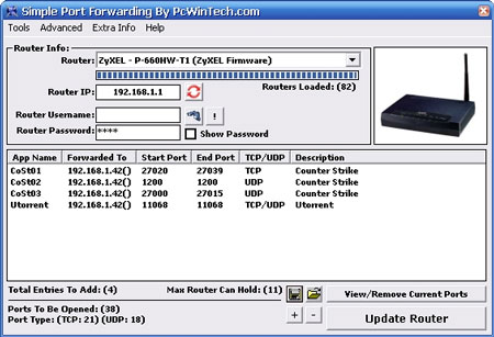 - Database: Cho phép thiết lập nhanh các cổng trên modem thông qua cơ sở dữ liệu bao gồm hơn 600 trò chơi và chương trình được hỗ trợ, hãy lựa chọn chương trình mình cần, port tương ứng sẽ được tự động mở trên modem.