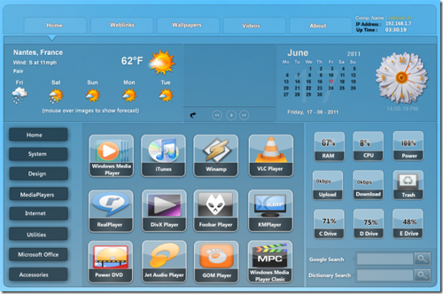 Được thiết kế theo lối truyền thống, các nhóm chức năng của Smart Desktop được phân thành các thẻ rõ ràng. Chúng lần lượt là Home, Weblink, Wallpaper và Video. Những tên gọi này thể hiện rất rõ các chức năng của từng thẻ, điều này giúp bạn bớt bỡ ngỡ khi bắt đầu sử dụng chương trình. Bởi lẽ đôi khi người dùng sẽ rất bực mình khi gặp phải những ứng dụng mà tên của các chức năng chẳng liên quan đến nhau là mấy.
