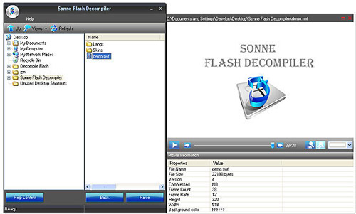 Sonne Flash Decompiler được thiết kế cho bất cứ ai muốn khôi phục lại các yếu tố được sử dụng trong các file flash. Nó là một chương trình dịch ngược file flash mạnh mẽ với các chức năng chuyển đổi các file flash giữa định dạng swf và exe và chỉnh sửa phim swf (văn bản động, hình ảnh và nhiều hơn nữa).