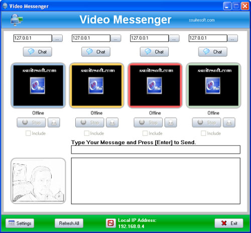 IM Video Chat là phần mềm gửi tin nhắn và video trong mạng LAN quy mô nhỏ, trung bình và lớn. Ứng dụng IM Video Chat là một sự thay thế lý tưởng cho các phần mềm gửi tin nhắn trên Internet tại các công ty, tại nhà, ký túc xá. Chương trình này tạo ra những tin nhắn riêng tư và tin nhắn mật, tăng khả năng kêt nối bên trong, năng suất kinh doanh và mối quan hệ với các đồng nghiệp trong công ty. Phần mềm có giao diện sử dụng thông minh, thuận tiện kết hợp với những lựa chon khả dụng tiên tiến, Phần mềm này cho phép bạn tham gia vào mạng lưới IM chỉ sau một vài cú kích chuột.