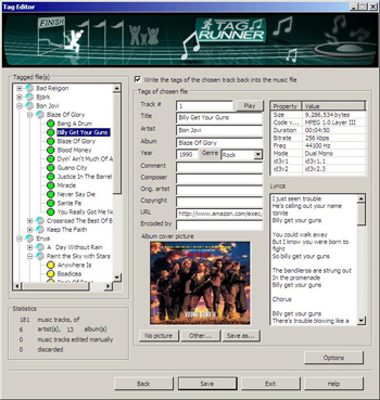 TagRunner có chức năng giúp chỉnh sửa hàng loạt thông tin bên trong tập tin MP3, WMA, OGG,…để tiện sắp xếp hoặc chia sẻ như các site chia sẻ nhạc chuyên nghiệp.