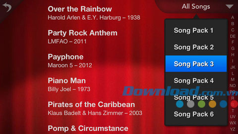 Người dùng có thể chơi các bản nhạc từ các nghệ sỹ đương đại nổi tiếng như Justin Bieber, One Direction, Katy Perry, Bruno Mars, Adele, Lady Gaga, Rihanna, Celine Dion, and Billy Joel.