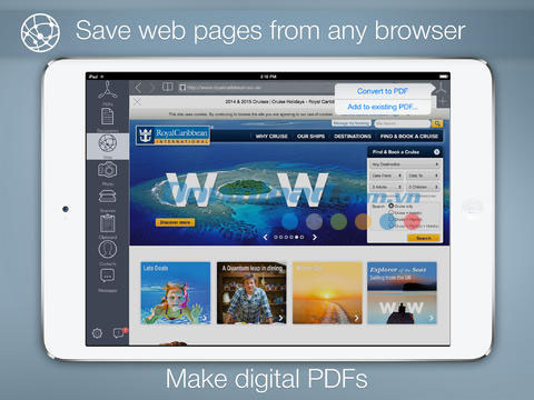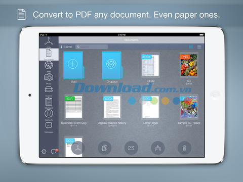 Với To PDF for iPad, người dùng có thể chuyển đổi các tài liệu MS Office, iWorks, trang web, ảnh, số liên lạc, tin nhắn sang định dạng Adobe PDF.