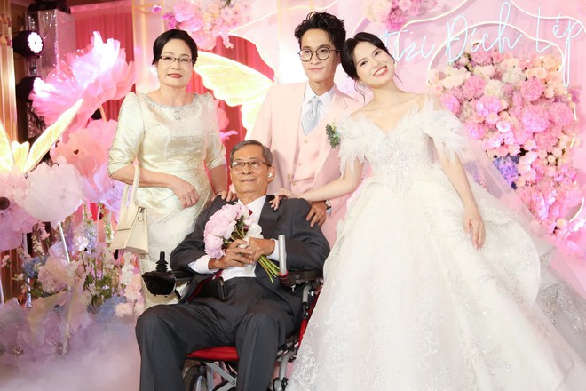 Đặc biệt hơn, nhiều khách mời tham dự không khỏi xúc động khi thấy bố ruột của Đích Lép ngồi xe lăn tới tham dự lễ cưới con trai. Nam YouTuber vừa bật khóc vừa ân cần dìu bố đứng dậy để cùng chụp hình với gia đình.