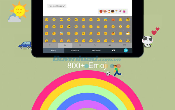 - Bàn phím emoji và hình biểu cảm xúc có thể sử dụng trong bất kỳ ứng dụng nào bạn thích.
