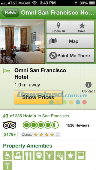 Cho phép tìm khách sạn và tìm kiếm theo mức giá phù hợp với ngân sách của bạn. Khi bạn dùng tùy chọn Book with TripAdvisor, bạn có thể truy cập thẳng vào thông tin phòng và mô tả do khách sạn cung cấp. Sau đó điền thông tin cần thiết để đặt phòng ngay trên TripAdvisor.