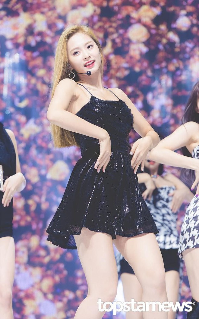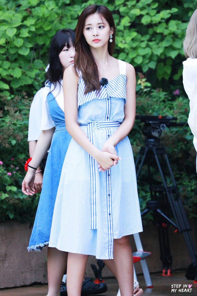 ... thay vào đó, họ lại để Tzuyu diện váy chữ A khá nhiều. Đây quả thực là điều đáng tiếc vì đa phần những mẫu váy chữ A mà JYP chọn đều có phom dáng rất sến, khiến Tzuyu bớt sang chảnh và giấu nhẹm đi phần hông xuất sắc của cô.
