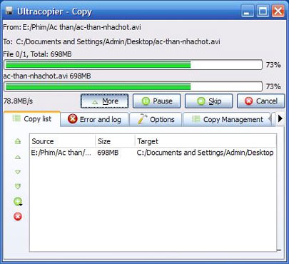 Thao tác copy dữ liệu dung lượng lớn sẽ làm hệ thống “ì ạch” nhất thời, thậm chí gây “treo” máy. Để khắc phục, bạn nên “hãm” tốc độ copy bằng Ultracopier. Không những thế, khi cần thì Ultracopier cũng giúp bạn tăng tốc độ sao chép những file dung lượng lớn.