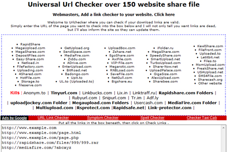 Một phần mềm hay một bộ phim thường được chia nhỏ ra thành nhiều phần (part) tương ứng với nhiều liên kết để tải về. Hãy tưởng tượng bạn cần tải một phần mềm đồ sộ gồm 20 liên kết, bạn đã tải được 19 liên kết, không may liên kết thứ 20 bị hỏng khiến công sức bạn bỏ ra trở thành vô nghĩa. Như vậy trước khi quyết định tải về một số lượng lớn các liên kết, bạn nên sử dụng công cụ kiểm tra liên kết xem chúng còn hoạt động không. Bạn chỉ cần truy cập vào URLChecker.net, dán tất cả các liên kết muốn kiểm tra vào khung trống và nhấn vào nút “Check Links”.
