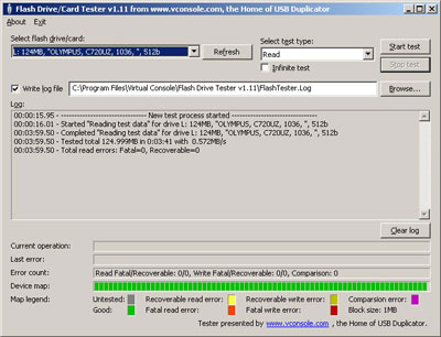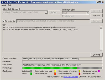 Hộp thoại cảnh báo cho biết quá trình kiểm tra sẽ xóa hết dữ liệu trên USB, bạn nhấn Yes để chấp nhận (Lưu ý: Nếu trên USB có những dữ liệu quan trọng, bạn nên tiến hành sao lưu trước). Thời gian kiểm tra lâu hay mau là tùy thuộc vào dung lượng và chất lượng của USB. Diễn tiến, nhật ký kiểm tra sẽ được thể hiện chi tiết trên giao diện chính của chương trình. Hoàn tất, bạn dựa vào nhật ký kiểm tra (dòng Tested total) để biết tốc độ đọc/ghi thật sự của USB. Chất lượng USB sẽ được thể hiện qua các thông số: Error count (số lỗi đọc/ghi dữ liệu mà chương trình phát hiện được) và Device map. Nếu trường Device map là một dãy toàn các ô nhỏ màu xanh thì USB có chất lượng tốt, nếu xuất hiện một vài ô có màu hồng hay đỏ nghĩa là USB đã bị lỗi trên một vài Fatal. Khi đó bạn phải cân nhắc việc chép dữ liệu lên USB để đề phòng trường hợp hỏng dữ liệu.