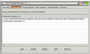 Khi chúng ta mở chương trình User Privilige Manager lên lần đầu tiên, chương trình sẽ yêu cầu xác định thư mục cần bảo vệ, lúc này bạn có thể bắt đầu thiết lập những thư mục cần bảo vệ hoặc là bạn cũng có thể tắt nó đi và thiết lập nó trong tab Private file. Khi bạn muốn lựa chọn những thư mục cần bảo vệ chỉ cần nhấn nút Add và chọn đường dẫn tới thư mục cần bảo vệ, ở đây bạn có thể chọn bao nhiêu thư mục tùy ý hoặc có thể chọn cả một ổ đĩa trên máy tính của bạn.