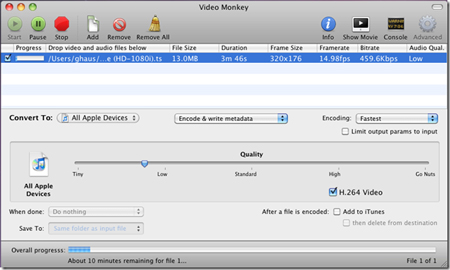 Ví dụ, nếu bạn chỉnh sửa một tập tin WMV với Quicktime Pro và lưu nó, VideoMonkey hiểu làm thế nào để tách âm thanh và video và tái tổ hợp chúng thành một định dạng mới với sự lựa chọn của bạn. Nếu bạn đã từng sử dụng và yêu VisualHub, VideoMonkey làm cho một thay thế rất tốt.