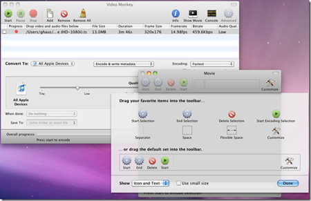 VideoMonkey là hoàn toàn tùy chỉnh và cho phép bạn kéo/thả các mục mà bạn thích sang thanh công cụ.
