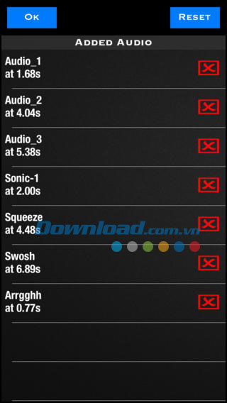 - Chọn và chèn các hiệu ứng audio tạo sẵn được tích hợp trong ứng dụng VideoDub.