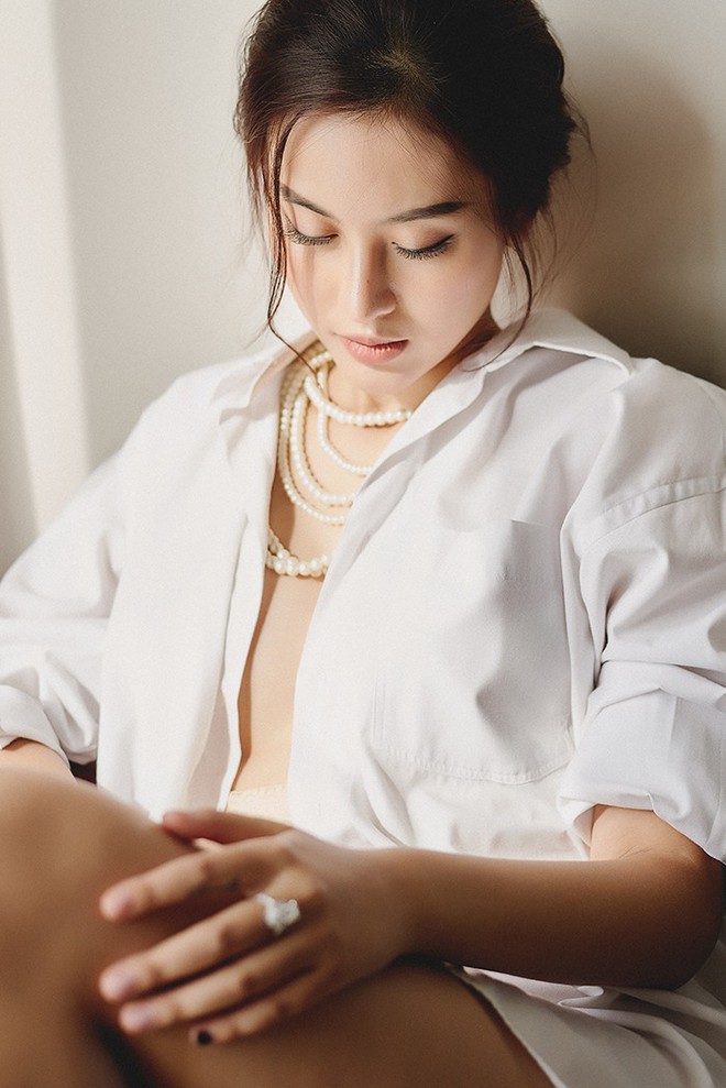 Cụ thể, thời gian gần đây, cô nàng đã liên tục đăng những bức ảnh trong một photoshoot lên Instagram. Đây là bộ ảnh theo concept khá sexy và hiện đại với trang phục chủ yếu là chiếc áo sơ-mi màu trắng hờ hững, vài dây đeo cổ ngọc trai cùng một bộ đồ lót màu đen.