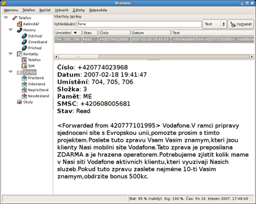 Chương trình này có thể đọc, lưu và gửi SMS. Nó bao gồm một trình soạn thảo SMS cho các tin nhắn SMS và có thể hiển thị các tin nhắn SMS có ảnh đi kèm. Hiện nay, chỉ có văn bản và ảnh nhị phân hoặc âm thanh, mới có thể chỉnh sửa trong trính soạn thảo SMS. Chương trình có thể xuất các tin nhắn sang IMAP4 server (hoặc một nơi lưu trữ email khác).