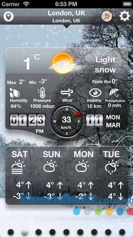 - Hiển thị hình ảnh chi tiết cho các điều kiện thời tiết như trời u ám, băng tuyết, mưa tuyết nhỏ, mưa đá nhỏ, tuyết rơi nhẹ...