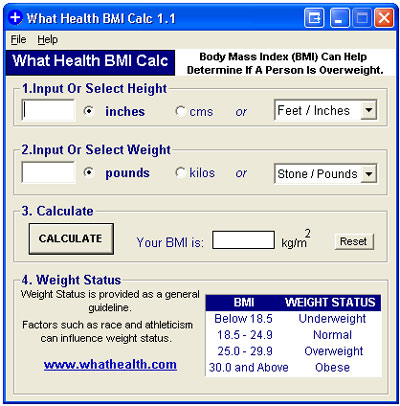 Bạn đang băng khoăn, không biết liệu mình đang dư thừa hay thiếu hụt một vài kí, bạn đang lo lắng con cái của mình không đủ tiêu chuẩn để có một cơ thể cân đối và khoẻ mạnh, bạn từng nghe về chỉ số BMI chưa, công thức tính của chỉ số này khá rắc rối và phức tạp nhưng không sao, What Health BMI Calc sẽ giúp bạn làm điều đó và sẽ cho bạn biết bạn đang quá mập hay quá ốm.