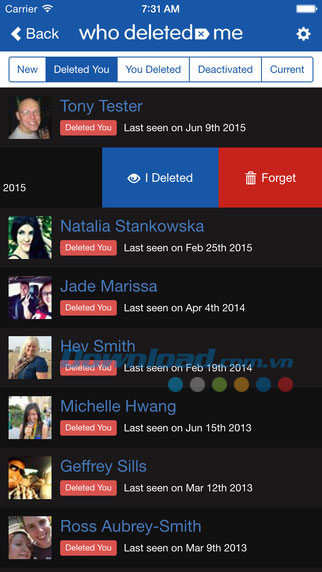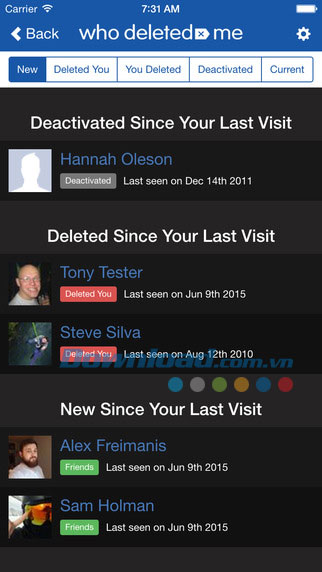 Với Who Deleted Me on Facebook, bạn sẽ không còn những thắc mắc như: tại sao không thấy bạn bè xuất hiện trên Home Feeds của mình, tại sao không thể xem post của họ?... lý do đơn giản là họ đã xóa tên bạn khỏi friend list hoặc tài khoản đã đóng cửa và ứng dụng sẽ thông báo cho bạn ngay ở lần truy cập mới!