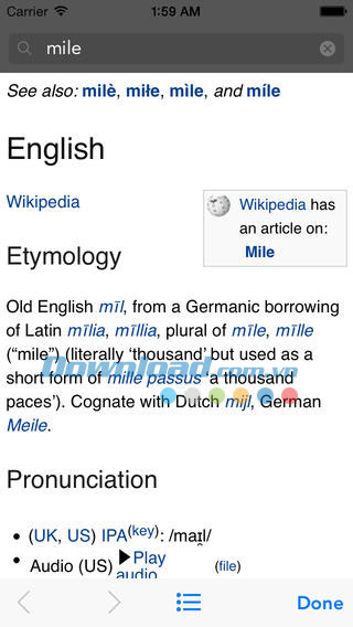 - Hỗ trợ phát audio để phát âm các từ trong từ điển và nội dung audio khác trên Wikipedia.