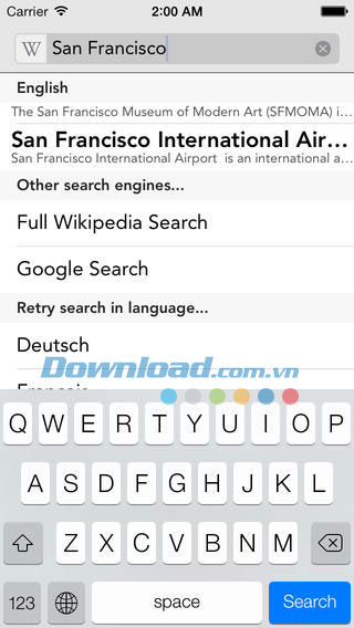 Các tính năng nổi bật của ứng dụng Wikipanion for iOS bao gồm: