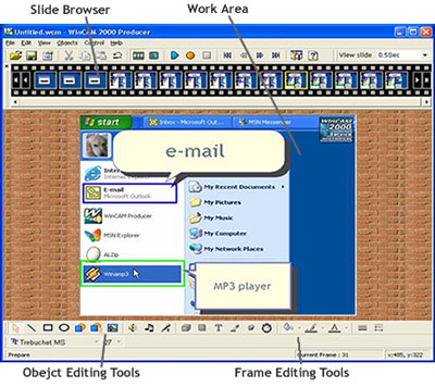 Một ưu điểm khác của WinCAM 2000 so với các chương trình cùng loại khác là thời gian ghi hình rất dài, rất dễ dàng và thuận tiện cho những bạn có nhu cầu thiết kế những bài giảng tin học để trình chiếu trên máy vi tính hay VCD.