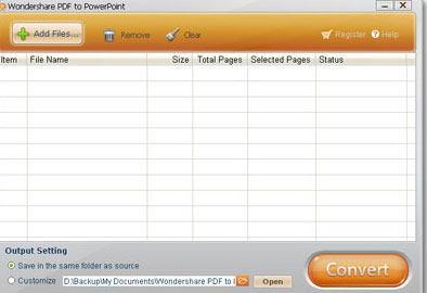 Wondershare PDF to PowerPoint cho phép bạn chuyển đổi các tập tin PDF sang định dạng trình diễn PowerPoint (PPT) chỉ với vài nhấn chuột. Trình diễn nội dung PDF đơn giản sau khi chuyển đổi PDF sang PPT.