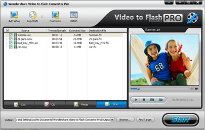 Wondershare Video to Flash Converter Pro là giải pháp lý tưởng để chuyển đổi DVD video sang Flash. Với Video to Flash Converter Pro, bạn có thể chuyển đổi WMV sang Flash, AVI sang Flash, MPEG/ MPG sang Flash, MOV sang Flash, DVD (vob) đến Flash, DV sang Flash, MOD đến Flash….