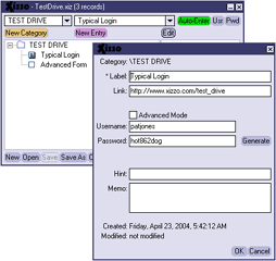 Mật khẩu Xizzo quản lý các tính năng bao gồm một click chuột nhập dữ liệu, một giao diện người dùng thân thiện, một tính năng tự động đăng xuất cho bảo mật tăng thêm nếu bạn rời khỏi máy tính của bạn, một bộ tạo mật khẩu tùy chỉnh, một ứng dụng mạng Launcher mở ra một cửa sổ trình duyệt mới khi bất kỳ entry nào được kích đúp và nhiều hơn nữa.