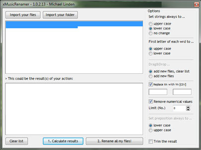 xMusicRenamer là một ứng dụng nhỏ và dễ sử dụng,cho phép bạn thay đổi rất nhiều tập tin music cùng một lúc. Ngoài ra bạn cũng có thể sử dụng nó để định dạng chuỗi của bạn. Đồng thời nó còn có rất nhiều chức năng tự động đổi tên tất cả các file nhạc.
