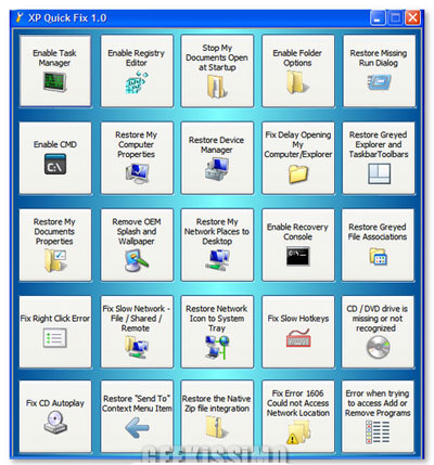 Khi các ứng dụng hay công cụ của hệ điều hành Windows có vấn đề, người dùng thường có nhiều cách để phục hồi, thay vì cài lại, một trong những cách khắc phục là sửa lỗi nếu ta biết. XP Quick Fix là phần mềm cho phép sửa lại 25 công cụ phổ biến nhất của Windows, khôi phục những công cụ hư hỏng nhanh chóng.