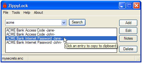 Chương trình quản lý mật khẩu ZippyLock sẽ lưu mật khẩu của bạn, số thẻ tín dụng và bất cứ điều gì bạn muốn được giữ ở một nơi an toàn. Sau đó, khi bạn cần chúng - ví dụ trong Internet Banking (nghiệp vụ ngân hàng qua mạng) - chương trình chỉ cho phép bạn nhập mật khẩu của bạn vào các form tự động mà không cần gõ. Với một vài click chuột bạn chỉ cần đăng nhập vào Internet Banking. Không cần nhớ mật khẩu. Không cần phải gõ chúng.