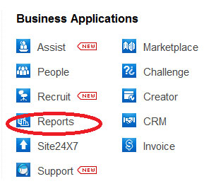 Tại trang chủ zoho, click Reports hoặc truy cập trực tiếp ở địa chỉ trên.