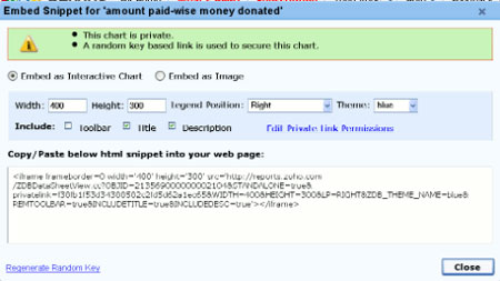 Một tùy chọn khác để chia sẻ báo cáo của bạn bằng email. Sự khác biệt ở đây, bạn có thể chia sẻ biểu đồ cho cộng đồng hoặc chia sẻ nó với một vài người dùng mà bạn muốn. Những người mà bạn chia sẻ liên kết chỉ cần đăng nhập vào Zoho Reports để xem các báo cáo.